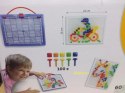 Zawiera 100 różnokolorowych pionków oraz plastikową planszę do wpinania.