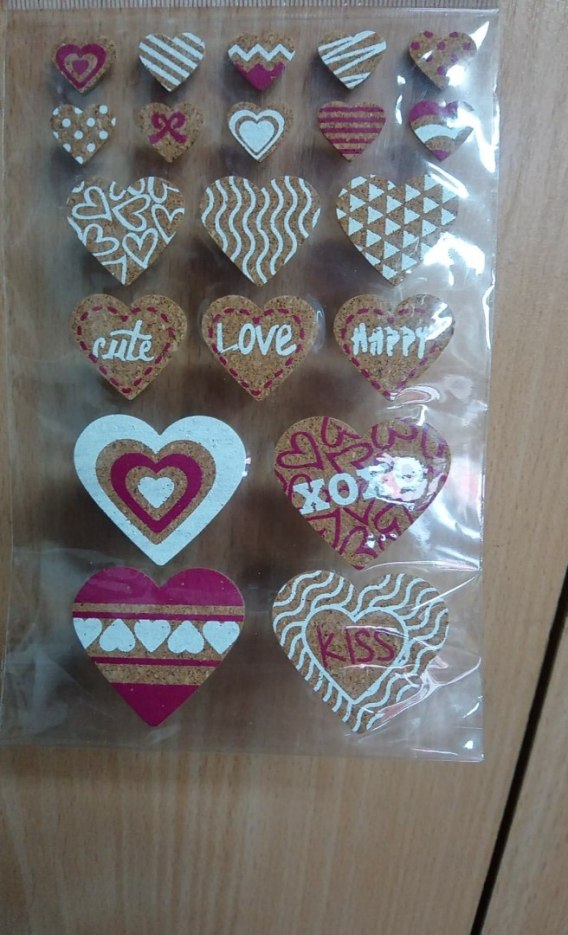 NAKLEJKI WALENTYNKOWE KORKOWE SERDUSZKA DO DEKORACJI