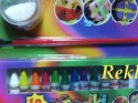 Zestaw zawiera 12 kolorów, brokat i pędzelek.
