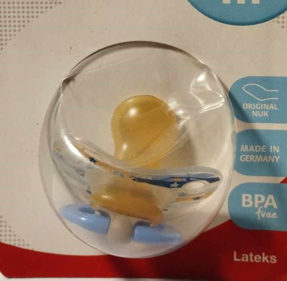 Smoczek gryzak przeznaczony dla niemowlęcia od 0 do 6 miesiąca życia. Gryzak z motywem autka.