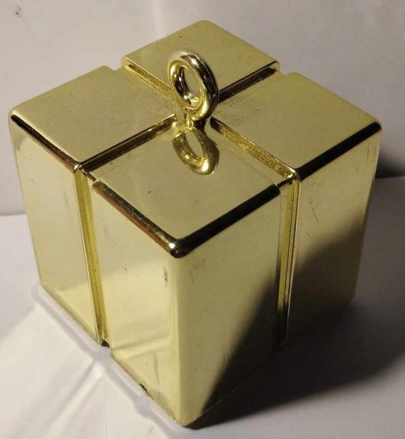 OBCIĄŻNIK DO BALONÓW Z HELEM W KSZTAŁCIE PREZENTU. ZŁOTY.