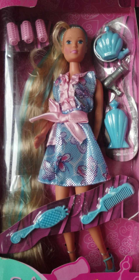 Oryginalna lalka Steffi z bardzo długimi włosami. W zestawie akcesoria do czesania. Lalka typu Barbie, wys. 30cm 3+