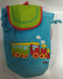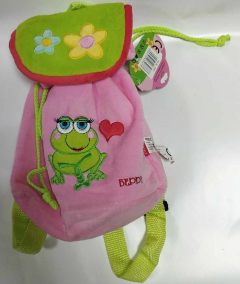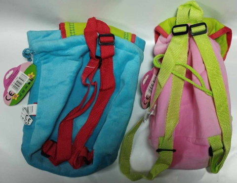 Pluszowy plecak, plecaczek dla maluszka. Idealny do przedszkola czy na rodzinną wycieczkę. Zaciągany sznurkami, posiada klapkę zapinaną na rzep.