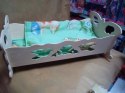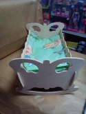 Przepiękna, rzeźbiona drewniana kołyska dla lalek z pościelą. Kołyska wykonana jest ze sklejki i jest naturalnego koloru sklejki. Kolory pościeli losowo. Wymiary kołyski 30 x 50 x 20cm. Dla dzieci od lat 3.