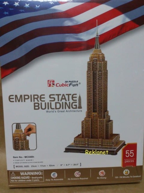 Puzzle 3D. Można ułożyć z nich znaną budowlę. Super zabawa z tworzeniem konstrukcji przestrzennych bez użycia kleju. Empire State Building - 55 elem. wym po złożeniu: 23 x 17 x 52cm , Od lat 3