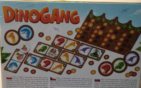Gra towarzyska, strategiczna Dinogang - zajmij jak najwięcej terenu dla swojego gangu dinozaurów, utrudniaj przeciwnikom zbieranie ich gangów... Dokładny opis gry w zestawie. Liczba graczy 2-5, wiek 6+