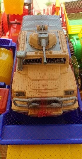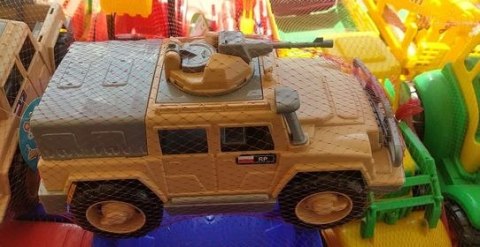 Samochód Jeep wojskowy ,,Obrońca Safari" z 1-ym karabinem maszynowym Idealny do zabawy na dworze i w domu Karabin umiejscowiony na dachu Wader Polesie Od lat 3 Długość całkowita około 30cm, wysokość około 15cm