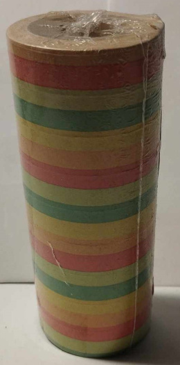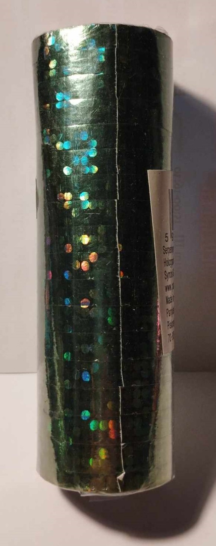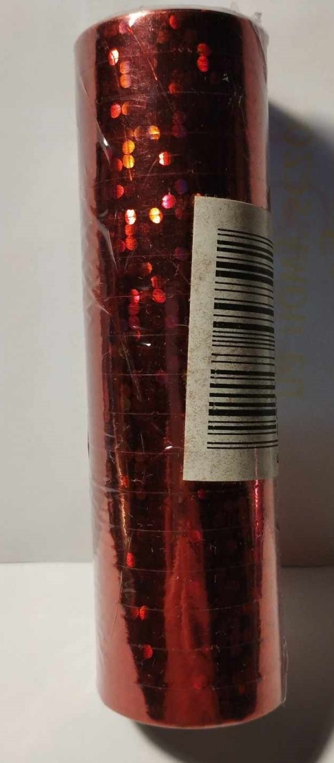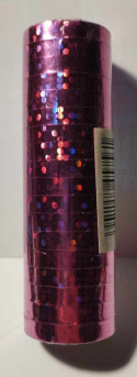 Serpentyny holograficzne, wzór KROPKI. 18 pasków o szer. 7 mm, średnica rolki 3,5cm.