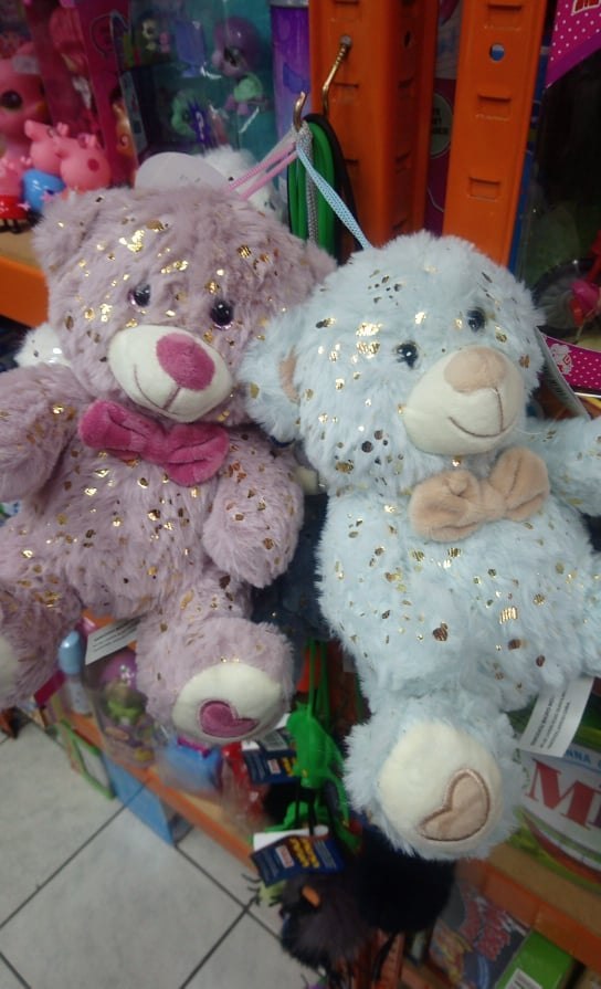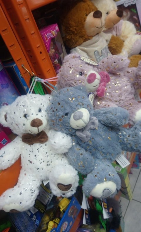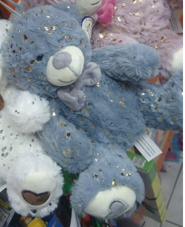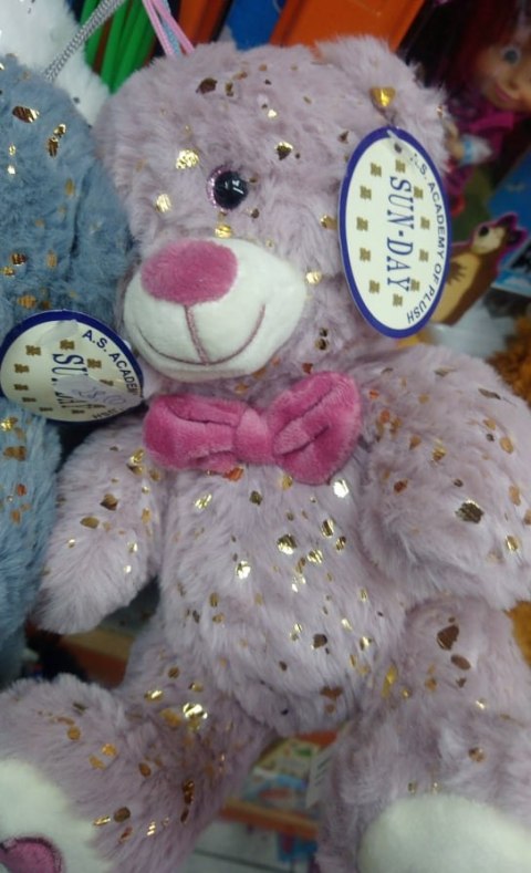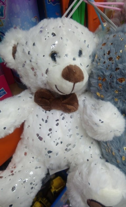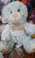 Śliczny miś ze złotymi plamkami na futerku na Walentynki i nie tylko. Wykonany z mięciutkiego, milutkiego pluszu. Idealny na zabawny walentynkowy prezent. Wysokość 22cm.