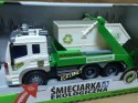 Samochód śmieciarka z ruchomym kontenerem. Zabawka plastikowa.