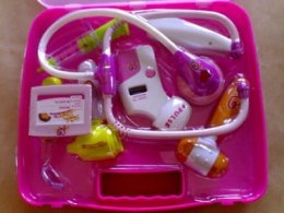 Marzysz o tym, aby Twoje dziecko rozwijało empatię i umiejętności interpersonalne od najmłodszych lat? Nasz zestaw lekarski to idealny wybór! Zestaw zawiera wszystko, czego potrzebuje młody lekarz do udawania wizyt u pacjentów - stetoskop, lampkę lekarską, termometr z wyświetlaczem, aparat do mierzenia ciśnienia oraz wiele innych akcesoriów, w sumie 14 elementów. Dzięki temu zabawkowy lekarz może badać pluszowe zwierzątka lub lalki i rozwijać swoją kreatywność podczas zabawy. Wymiary walizki 30x26x8cm.
