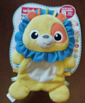 Przytulanka, mamlaczyk dla niemowlęcia. Pluszowy lew posiada różne materiałowe wypustki, które dziecko może ssać, mamlać zamiast smoczka, rączek czy pieluszki.