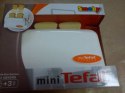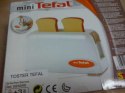 Mini Tefal to linia zabawek na baterie do złudzenia przypominających prawdziwy sprzęt AGD. Wymiary zabawki toster: 15 x 10cm, tosty ok. 5 x 5cm. Toster posiada przycisk, dzięki któremu tosty wyskakują, jak w prawdziwym tosterze.