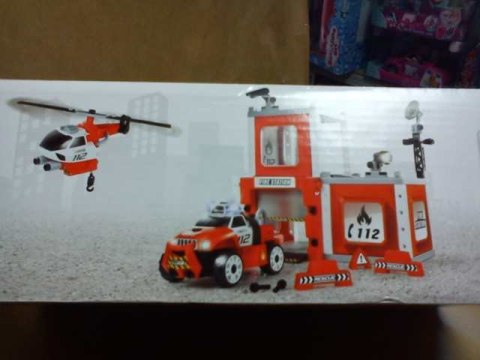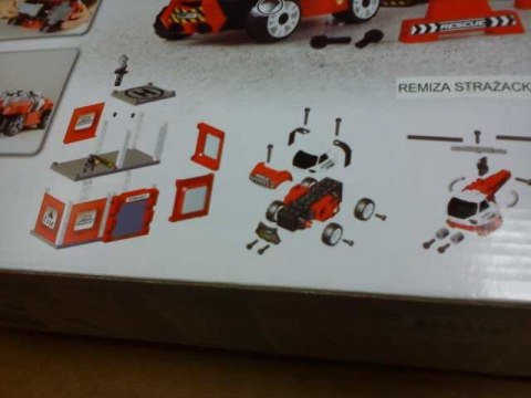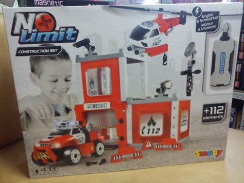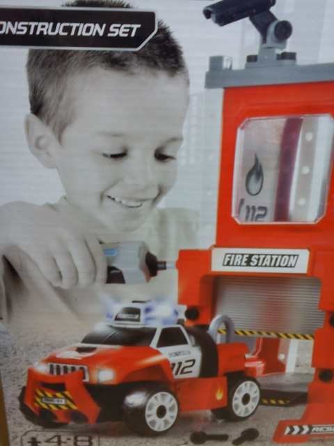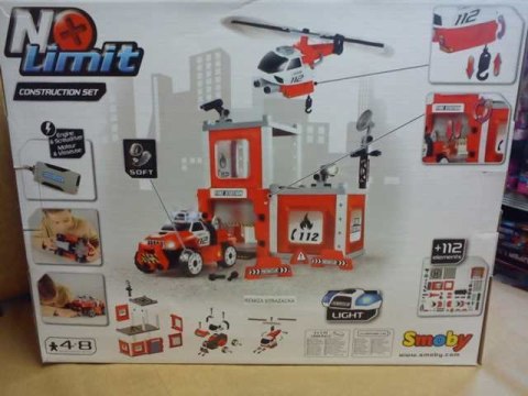 Smoby - zestaw do samodzielnego skręcania. Dzięki wkrętarce elektrycznej dziecko może skontruować remizę, helikopter oraz wóz strażacki. Moduł napędu wkrętarki można wykorzystać do napędu samochodu.