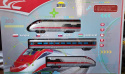 Kolejka elektryczna na baterie (2 paluszki, nie załączone) w skali 1:87. Kolejka posiada kształt pociągu Pendolino dżwięki oraz migające światła. W zestawie 2 lokomotywy, 1 wagon osobowy, 2 drzewka. Długość składu ok. 65cm, Tor można złożyć w owal o wym. 190x121cm lub okrąg o średnicy 101cm. Od lat 6