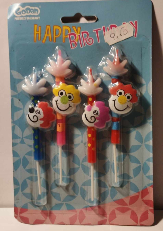 ŚWIECZKI URODZINOWE KOLOROWE KLAUNY, 4 SZTUKI, 11CM.
