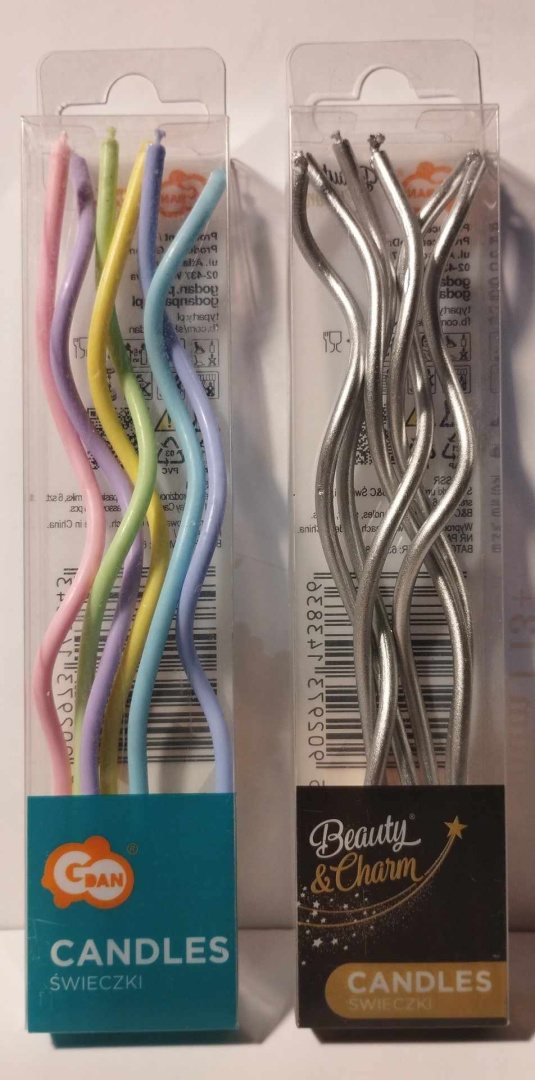 ŚWIECZKI URODZINOWE NA TORT. ELEGANCKIE, SKRĘCONE ŚWIDERKI. 6 sztuk