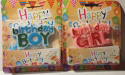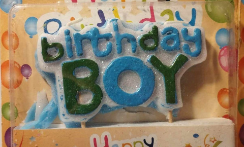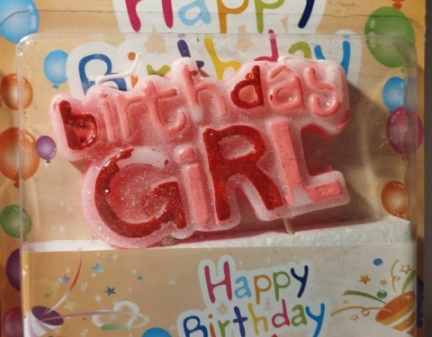 Świeczki urodzinowe na tort w formie napisu "Birthday Girl" lub "Birthday Boy". Szerokość 9,5cm, wus, 5,5cm.