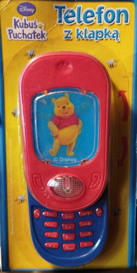 Telefonik z Kubusiem Puchatkiem z rozsuwaną klapką i obrazkiem trójwymiarowym.