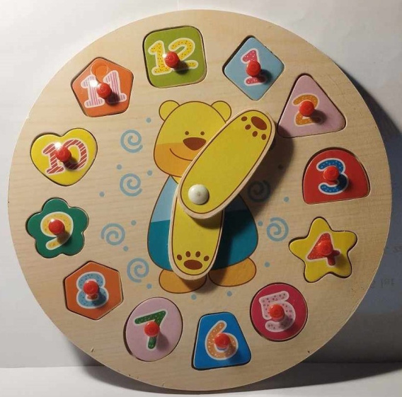 Układanka stanowi świetną pomoc w rozróżnianiu i nauce godzin i cyfr a także kształtów i kolorów. Kształt cyfr i kolorów oraz odpowiadających im miejsc w planszy wymuszają prawidłowe odpowiedzi. Układanka rozwija umiejętności manualne, spostrzegawczość, inteligencję i logiczne myślenie.