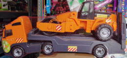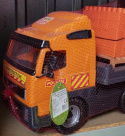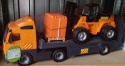 Auto laweta Volvo z wózkiem widłowym i klockami SUPER MIX na palecie. 30 elementów. Bardzo duży zestaw - długość lawety 75,5cm, z rozłożonym najazdem ok. 90cm. 3+