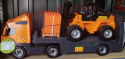 Auto laweta Volvo z wózkiem widłowym i klockami SUPER MIX na palecie. 30 elementów. Bardzo duży zestaw - długość lawety 75,5cm, z rozłożonym najazdem ok. 90cm.