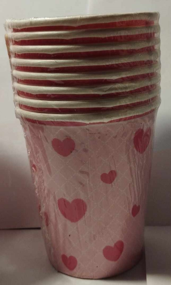 Papierowe kubeczki urodzinowe z serduszkami. Opakowanie 8 sztuk x 250 ml. Idealne na romantyczny wieczór walentynkowy.