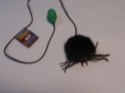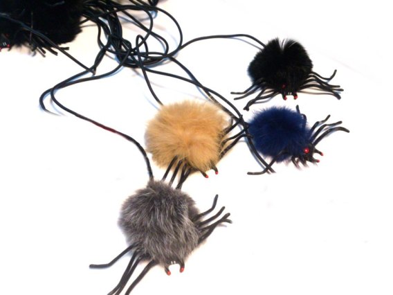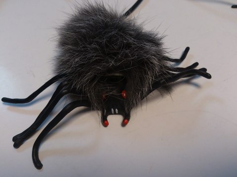 Pająk skaczący, napędzany powietrzem z pompki. Milutkie włosie, ciekawe kolory. Odnóża silikonowe. Wymiar odwłoka 8 x 8cm, rozpiętość odnóży 15cm.