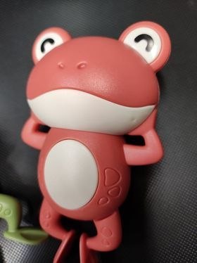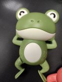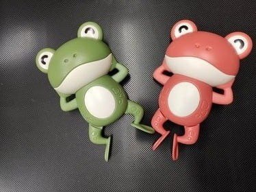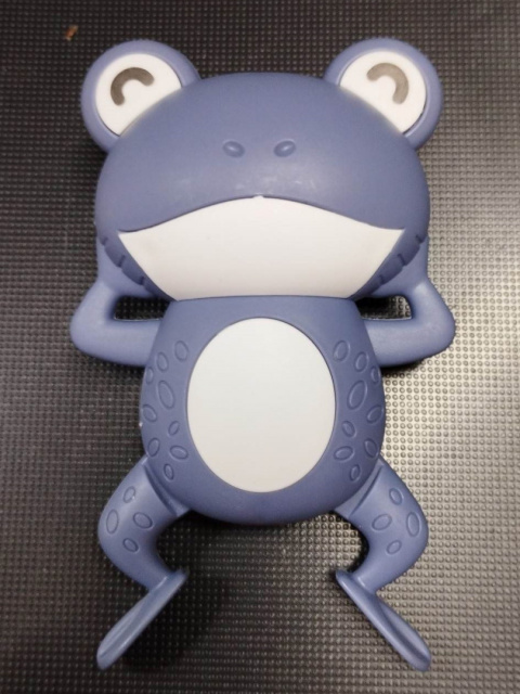 Śliczna, nakręcana żabka. Po nakręceniu rusza tylnymi łapkami co umożliwia jej utrzymywanie się na wodzie. Idealnie sprawdzi się podczas kąpieli w wannie i basenie.