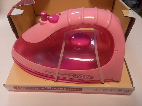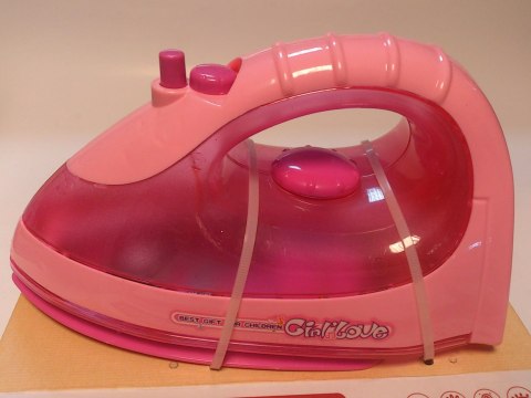 Żelazko na baterie 2 paluszki, nie załączone. Długość 20cm, wys. 13cm. Żelazko ma świecącą kontrolkę oraz muzyczkę. Działa na baterie 2 paluszki zwykłe, nie załączone.
