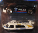 Zestaw 4 modeli metalowo-plastikowych w skali 1:64. Modele w barwach policji amerykańskiej - radiowóz, poduszkowiec, wóz bojowy i jeep policyjny. Długość autek 7 cm.
