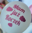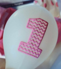 Zestaw balonów na Roczek, 1 urodzinki. W zestawie balony: foliowa cyfra 1 (wys. 40cm) oraz 10 gumowych balonów z nadrukami - różowe i transarentne. Balon foliowy "1" do dmuchania powietrzem. NIE unosi się po nadmuchaniu helem! Balony gumowe można pompować helem i powietrzem przez załączoną słomkę. W sklepie posiadamy taśmy taśma do balonów oraz podklejki podklejki do balonów, dzięki którym balony można zamocować tak, jakby były nadmuchane helem. Do balonów z helem posiadamy również obciążniki w kształcie złotego prezentu. OBCIĄŻNIK DO BALONÓW Balony można łączyć z podobnymi z innych firm. Na zdjęciach balony NIE są dopompowane do końca, są dużo większe. Tutaj pokazują tylko nadruk!