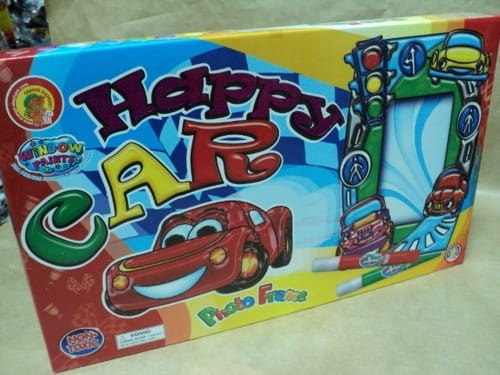 Zestaw do własnoręcznego ozdobienia ramki na zdjęcia - wzór autka. Zestaw zawiera 9 tubek farb w różnych kolorach oraz plastikową ramkę z gotowym szablonem autek. Farbę należy nanosić wewnątrz szablonu. Gotowy witraż musi schnąć minimum 6 godzin. Od ...