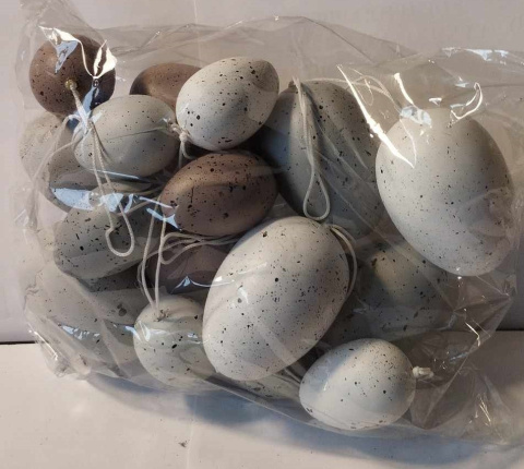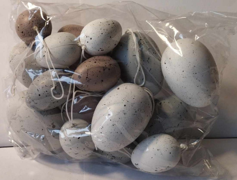 ZESTAW JAJEK WIELKANOCNYCH Z ZAWIESZKĄ. PLASTIKOWE PISANKI NAKRAPIANE 15 SZTUK.