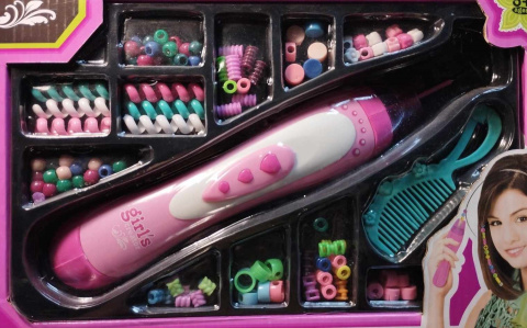 Zestaw koralików do ozdabiania włosów z maszynką i grzebykiem. Od lat 5