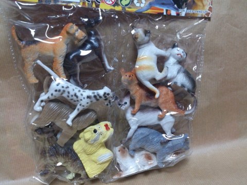 Zestaw zawiera 12 sylwetek - 6 psów i 6 kotów różnych ras. Długość zwierzątek ok. 6cm. Dla dzieci od 3 lat.
